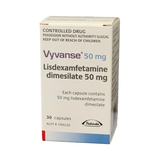 Vyvanse 50mg is a prescription stimulant medication used in the treatment of Attention-Deficit/Hyperactivity Disorder (ADHD) and Binge Eating Disorder (BED). Its active ingredient, lisdexamfetamine dimesylate, is a prodrug of dextroamphetamine, meaning it becomes active only after being metabolized inside the body. This design provides a smoother onset, prolonged duration, and a lower potential for sudden spikes in effects compared to immediate-acting stimulants.